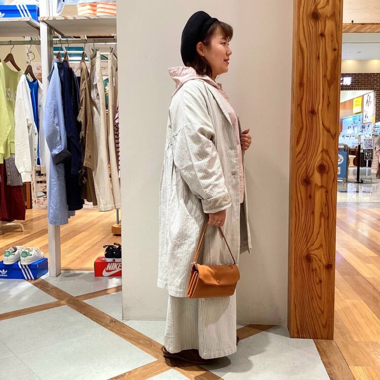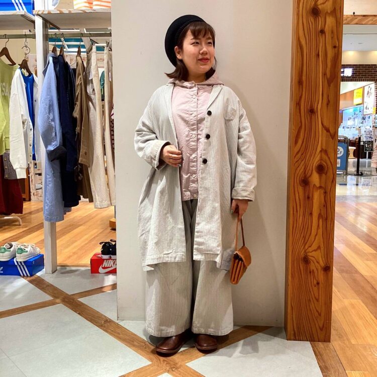 ゆったりとしたワイドなシルエットで重ね着しやすい!