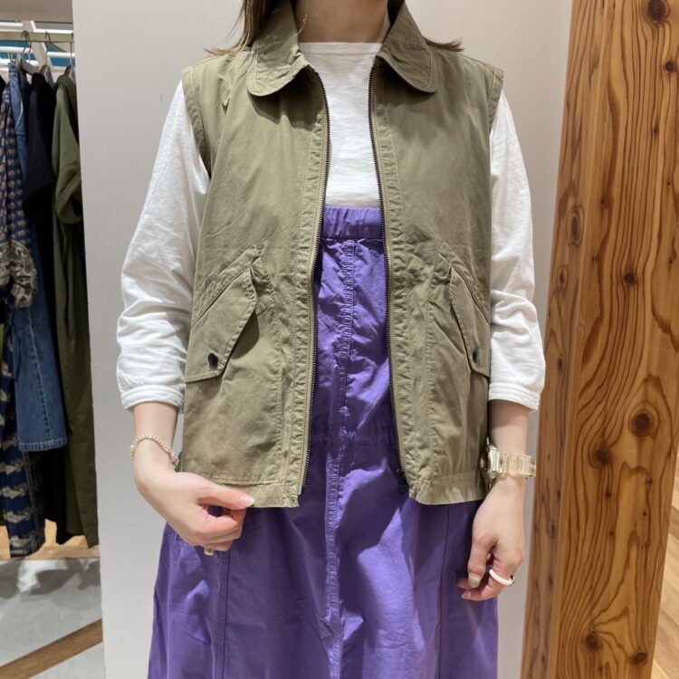 薄手で軽く、爽やかな風合いの生地感で、ライトな雰囲気に仕上がっています。