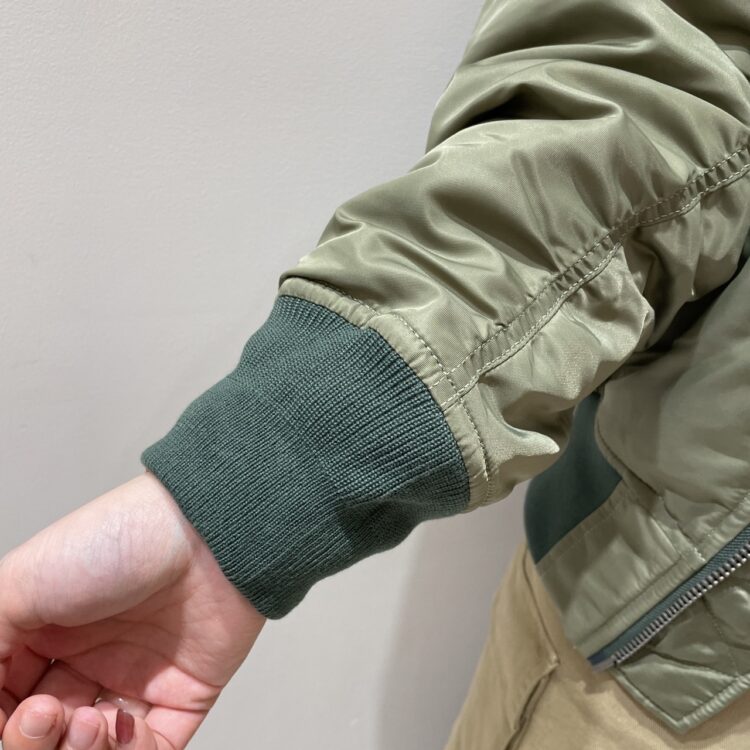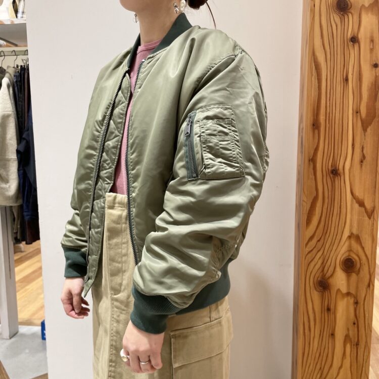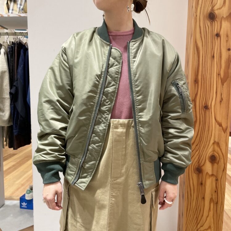 ミリタリーの佇まい、オーバーシルエットの雰囲気はそのままに、従来のMA-1から着丈を少し長く着やすくアレンジしています。