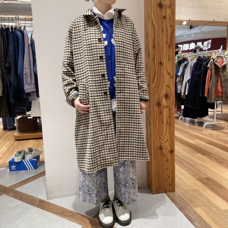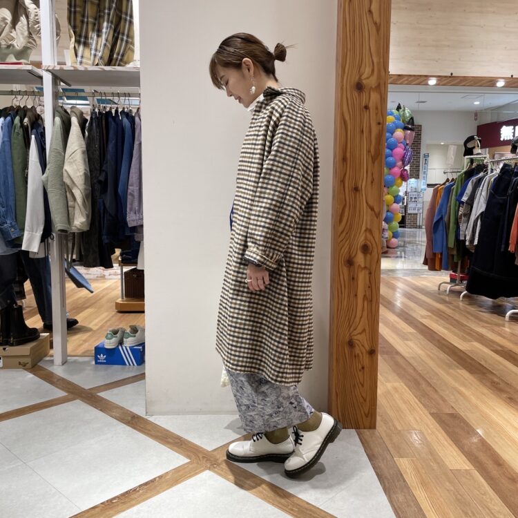 秋冬らしく少しかっちりした印象のガンクラブチェックコートがコーディネートの鮮度を上げます。