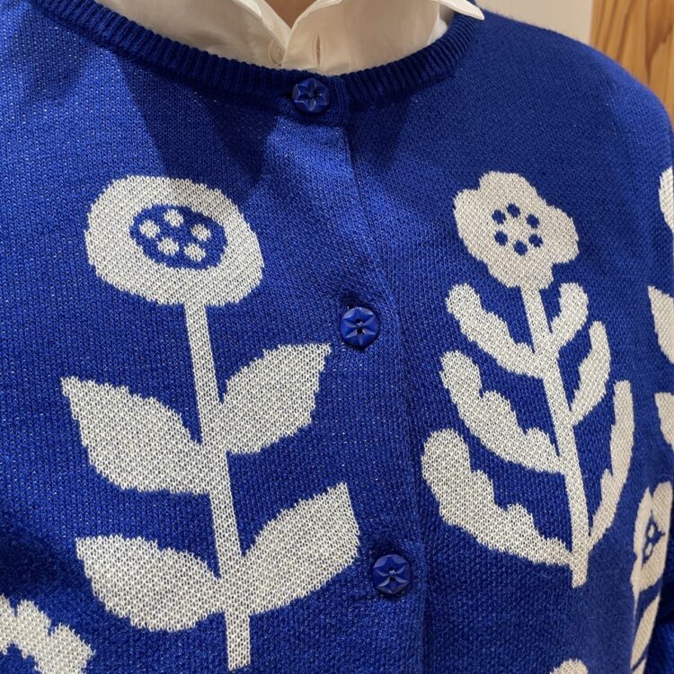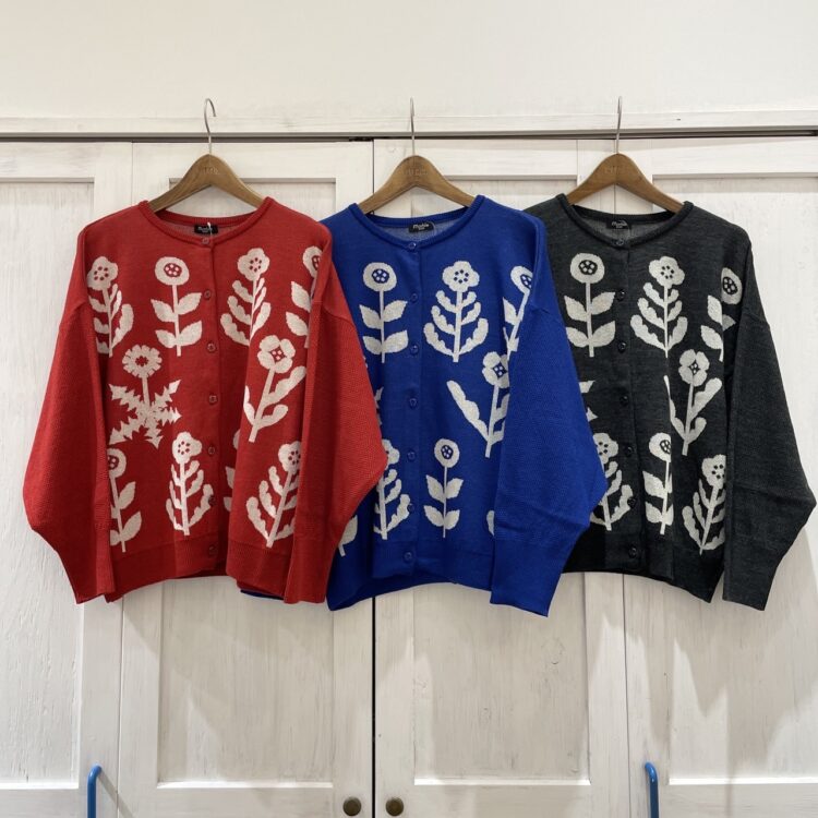 人気テキスタイル“Kukka JQ”の花柄をニットで表現しました。