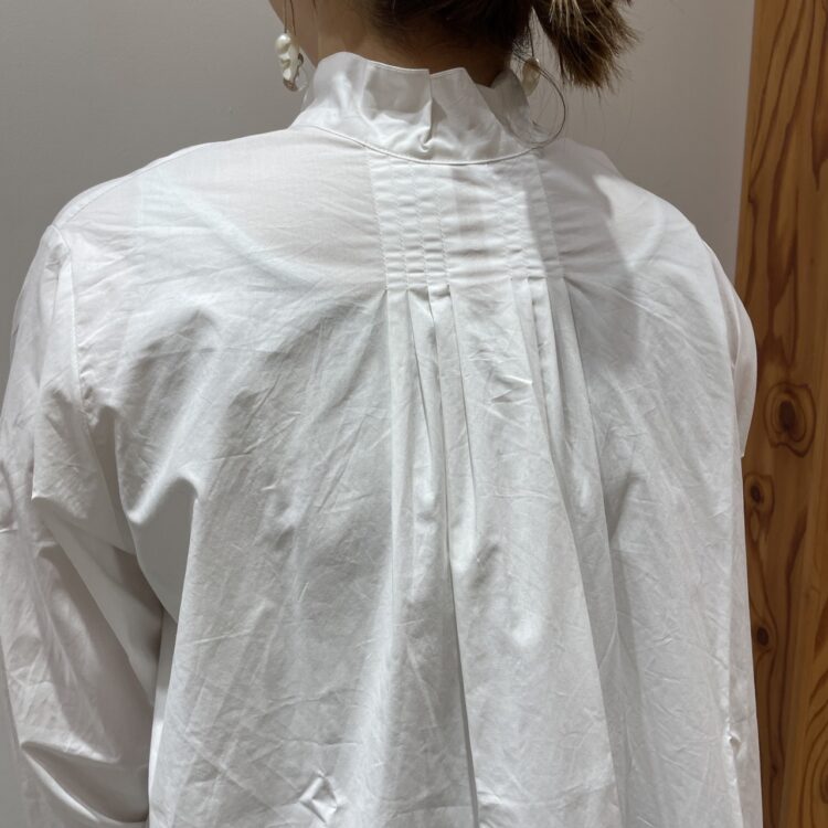 前後どちらでも着用ができ、襟もスタンドカラーや、寝かせてステンカラーのように見せても表情が変わります。