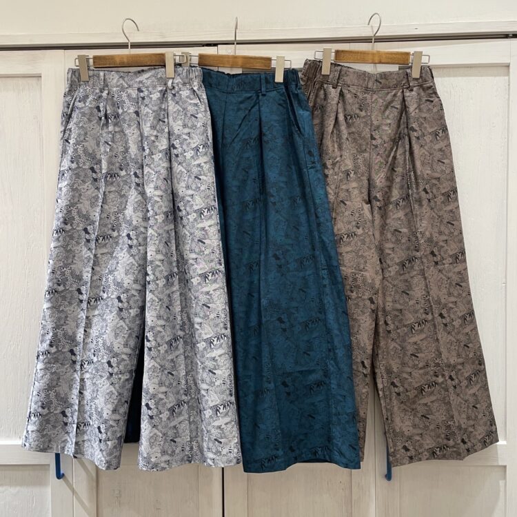 ゆったりとしたシルエットですが、ウエストと裾に配した紐を絞って頂くと、お好みのシルエットに調節して着用頂けます。