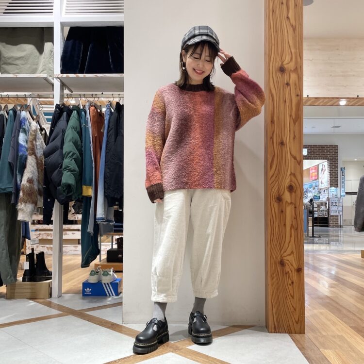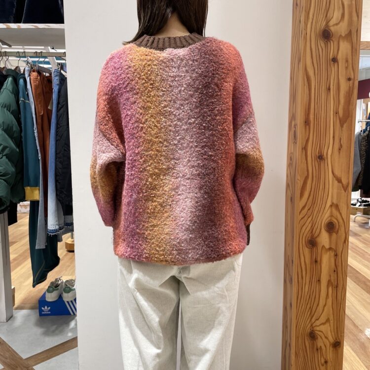 配色が混ざりあう絶妙グラデーションニット。