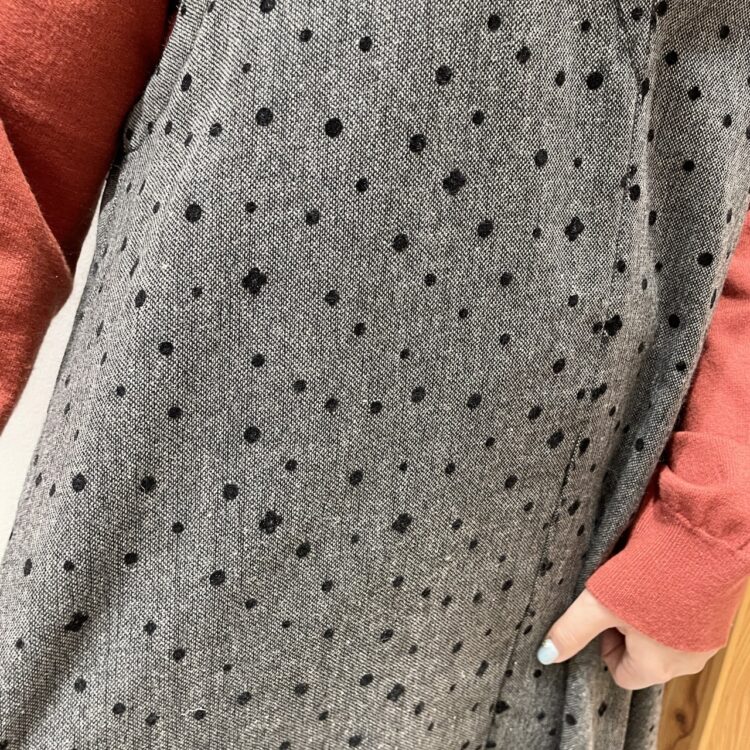 ウール混ツイードフロッキードットプリントVネックノースリワンピース