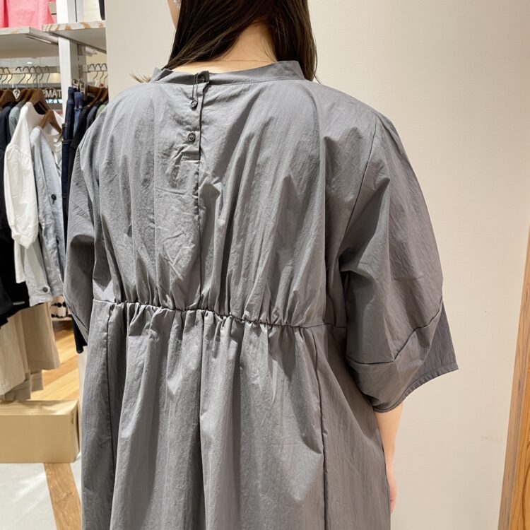 シャカシャカとしたコットンナイロンらしい風合いで、カジュアル使いしやすいワンピース。