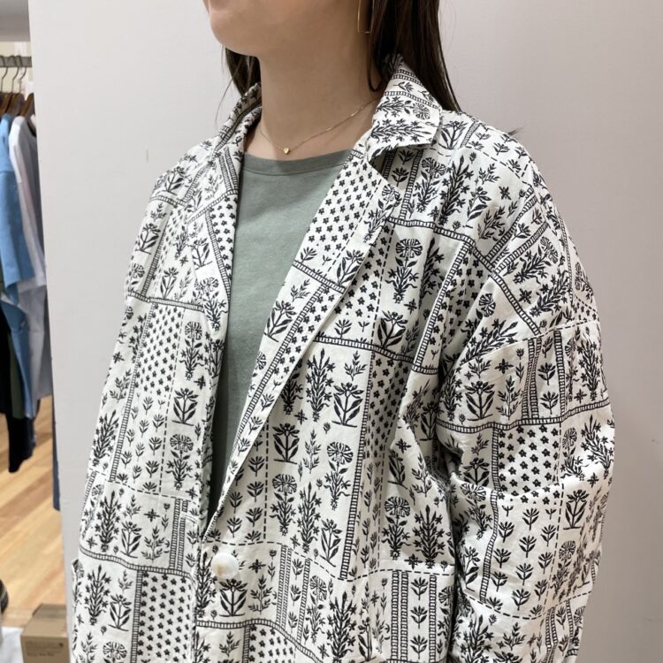 corailオリジナルの柄が目を惹くテーラードジャケット。