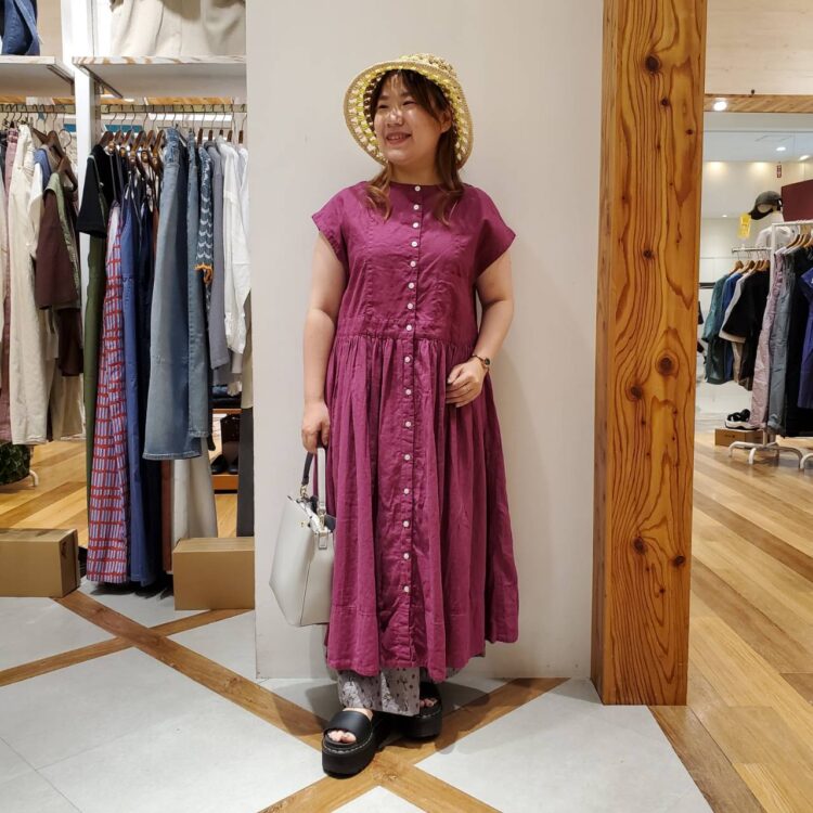 🏷️別注 綿麻平織フレンチ袖切替ワンピース