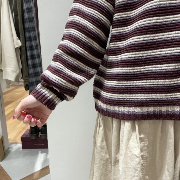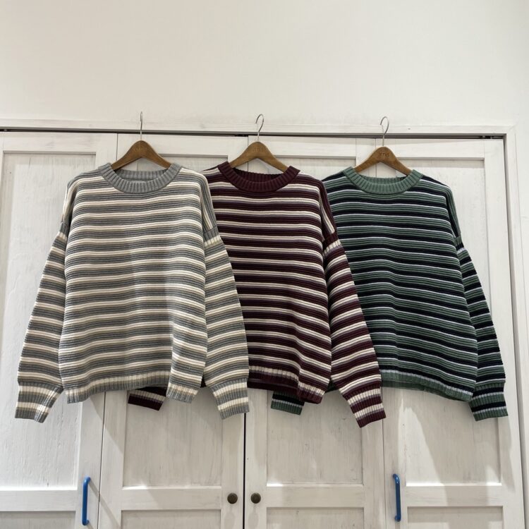 この編地とボーダーの相性が良く、立体感がより強調されています。