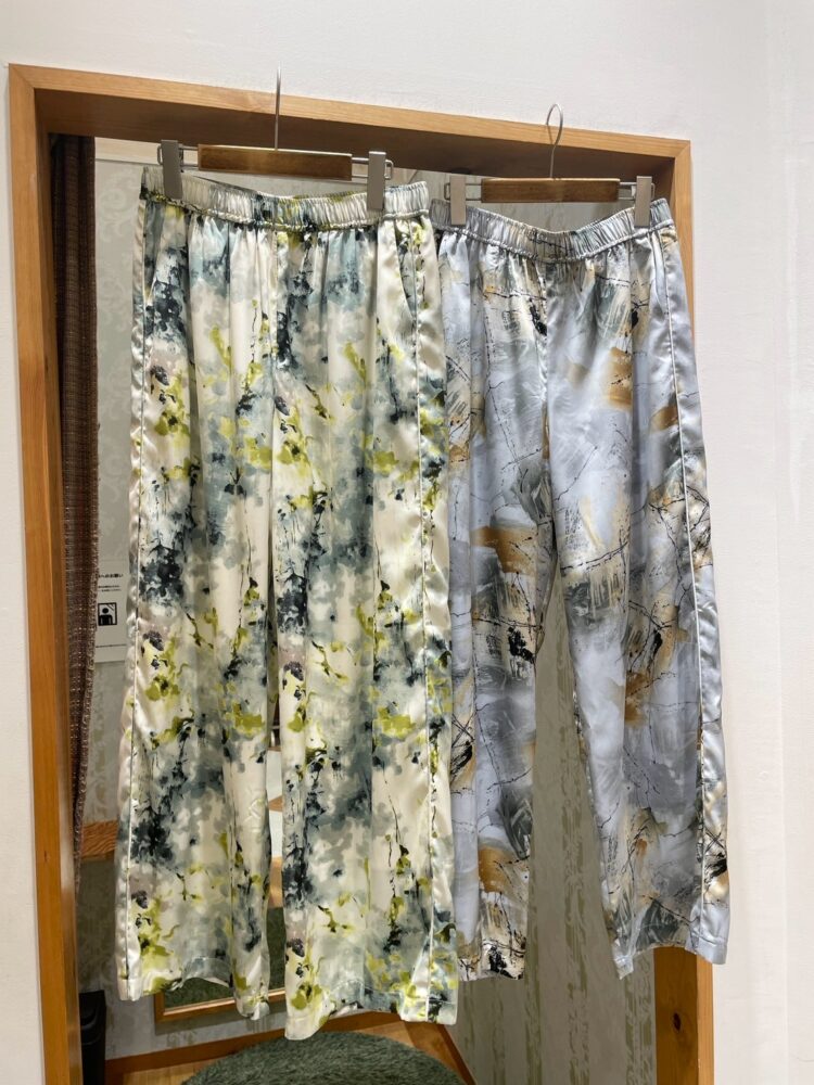 すっきりとしたきれいなシルエットのワイドパンツ。